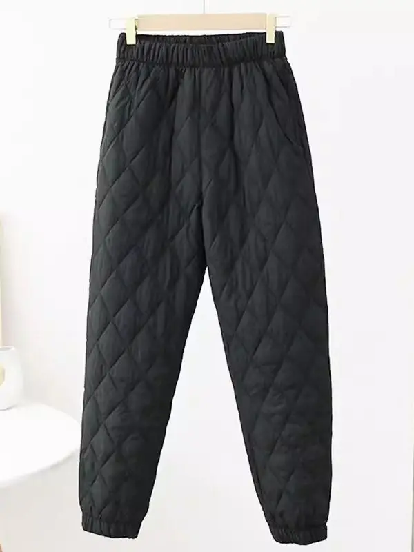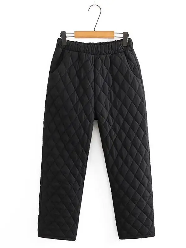 Thiened Cotton Pants Men's Outerwear Winter Warm Quilted Straight Leg Pants Diamond Patterned Dad Clothes Casual Long Pants