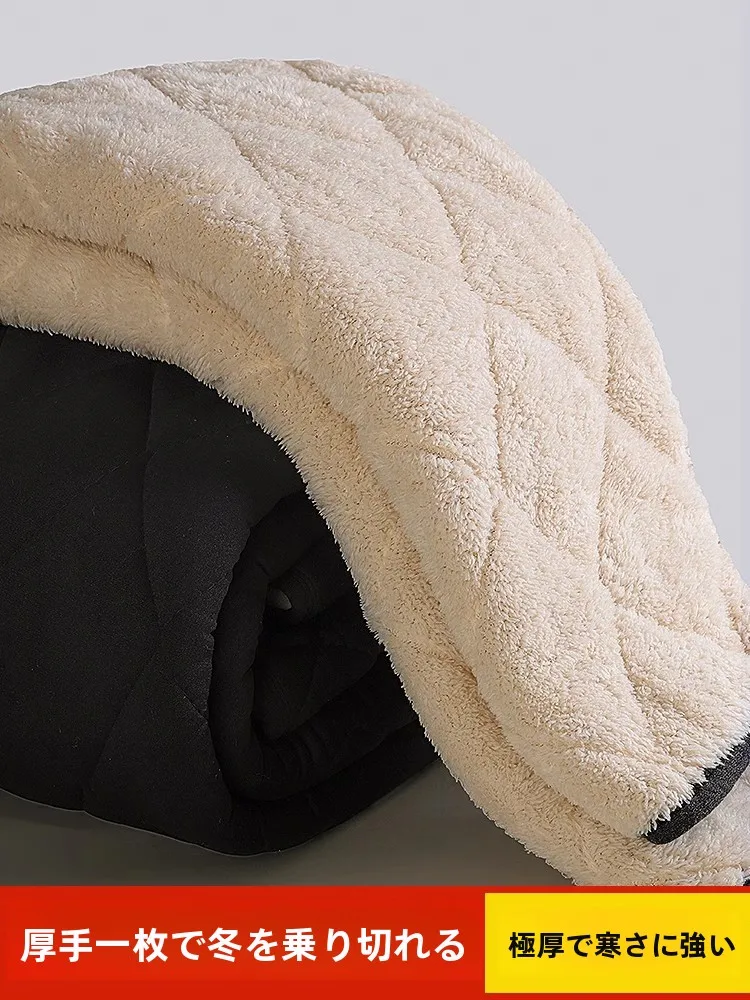 Men's Thiened Fce Lined Cotton Pants Warm Winter Trousers Extra Thi Loose High Waist Double Layered Lamb Velvet Pants