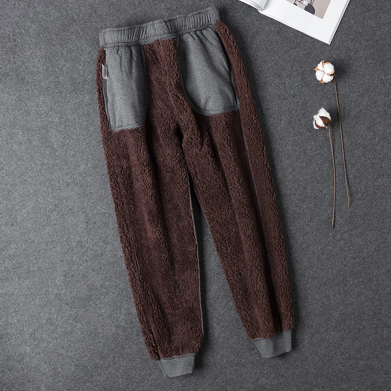 Men's Winter Thiened Fce Lined Cotton Pants Breathable Casual Trousers Large Size Warm And Comfortable Lamb Velvet