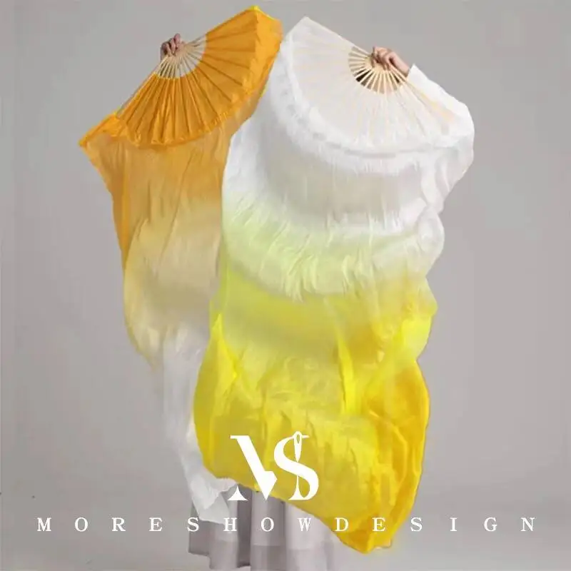 Belly Dance Folding Fans 100% Real Silk Material Veil Fan Gradient Color Performance Outfit Accessory For Adult Women 1.8M