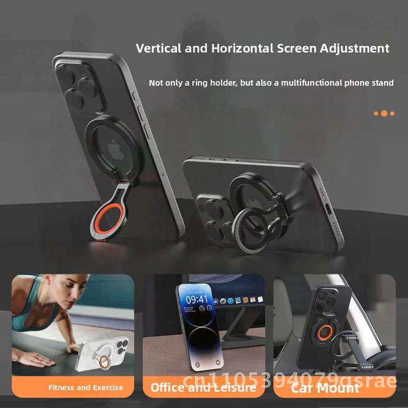 Magsafe Magnetic Mobile Phone Stand - Desktop Fulcrum Bracket with Zinc Alloy Ring Buckle Universal Lazy Holder for Black iPhone