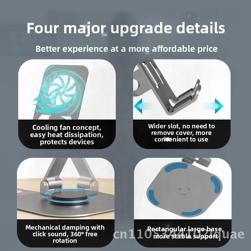 All-Metal Foldable Rotating Mobile Phone Bracket Carbon Steel Desktop Stand for 4 12 9 Inch Equipment Universal Gray White