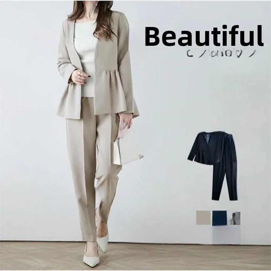 Fashionable V-Neck Long Sleeve Slimming Women's Suit Jacket And Nine-Piece Pants Set Korean Style Spring Autumn Japanese Style