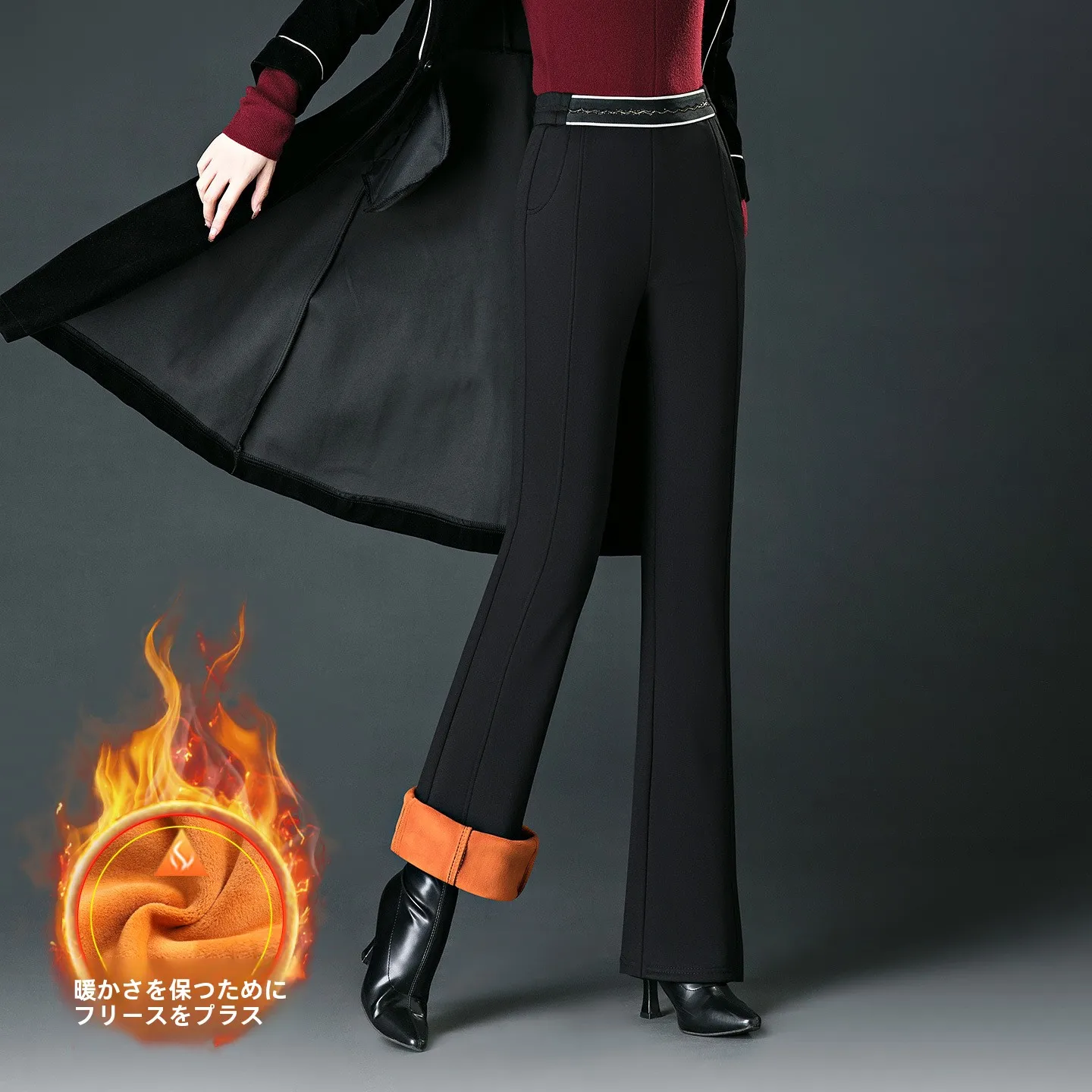 Bla Knitted Fce Lined High Waist Bell Bot Pants plus Size Faionable Mommy Trousers Long Pants Thiened Winter Wear