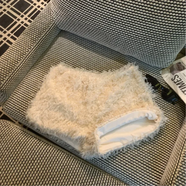 Slim Fit Fleece Lined Thickened Fringed Short Pants Women's Autumn Winter High Waist Sexy A-Line Skirt Stylish Korean Style