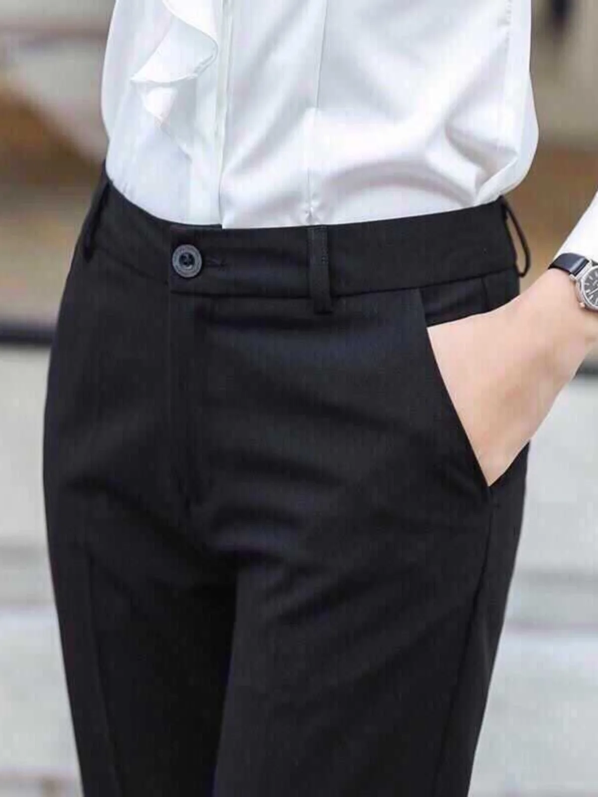 Slim Fit Formal Pants Women's Thick Black Workwear Trousers High Waist Straight Leg Long Pants Professional Korean Style Cott...