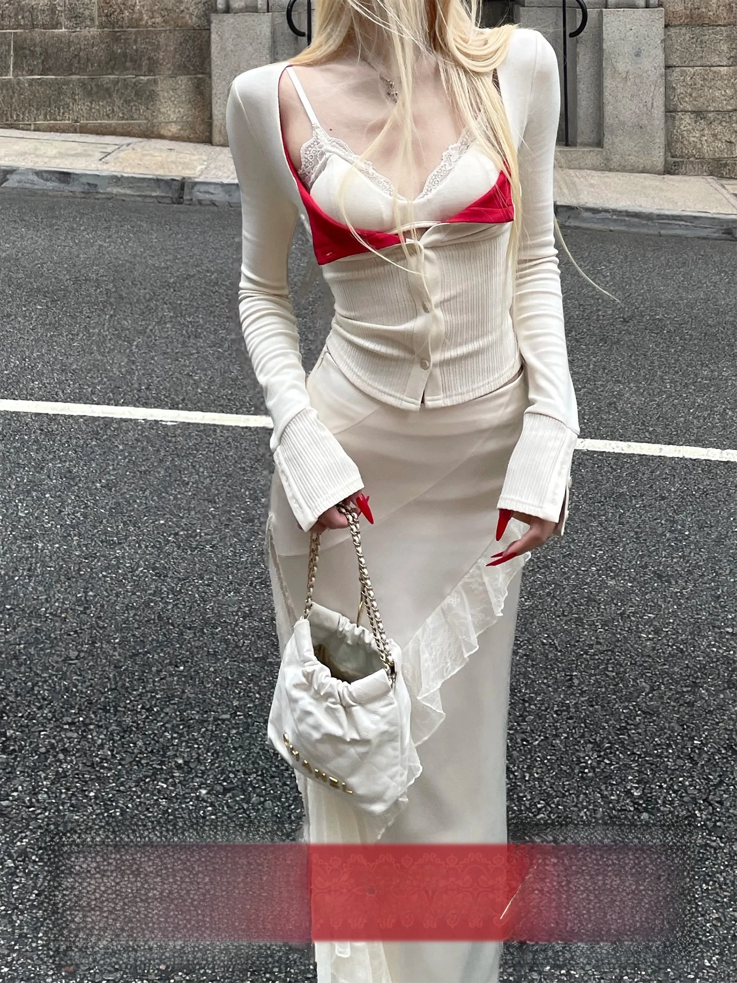 Rase Le Sol 'Muses Kiss' Color Blo Knitted Cardigan Lace Trim Inner Wear Skirt Set Women's Faion Spring Season Tee Piec...