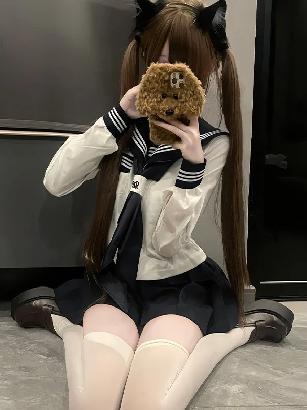 Japanese Sle JK orm Traditional Base Middle School Navy Collar White Tee Books Sailor Long Sve Set Women's Faion