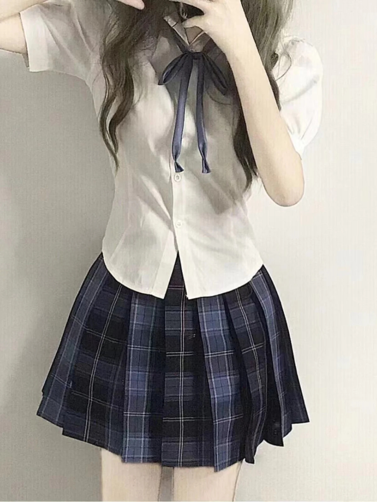 Original Bla Stoings School orm Set with Waist-Cinching irt for Young Women Summer Faion irt ort Skirt