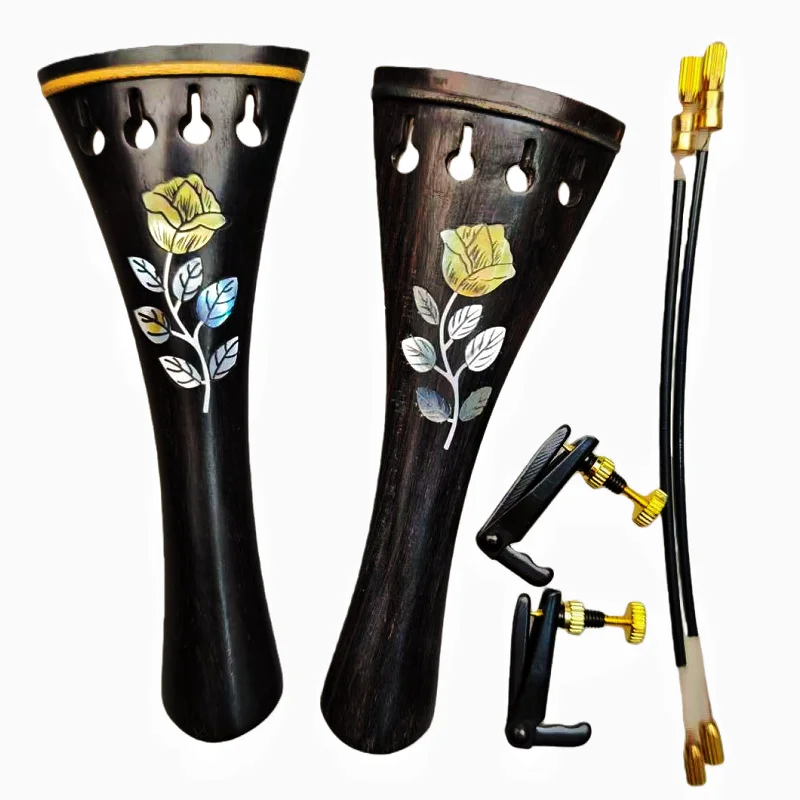 1pcs Black Ebony Violin Tailpiece with Finetuner Gut Hand inlaid Pearl shell 4/4 Full size Fiddle Tail Pie Replacements