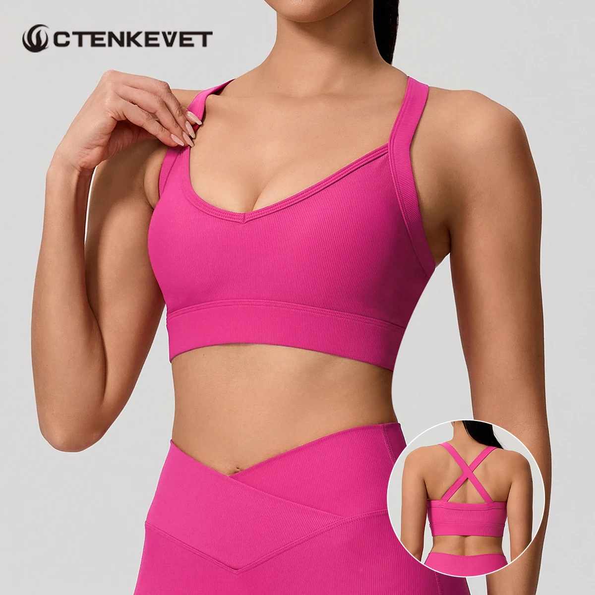 Ctenkevet Ribbed Sports Bra Women's Push up Yoga Top Running Gym Workout Brassiere - Women's Back Cross Sport Underwear