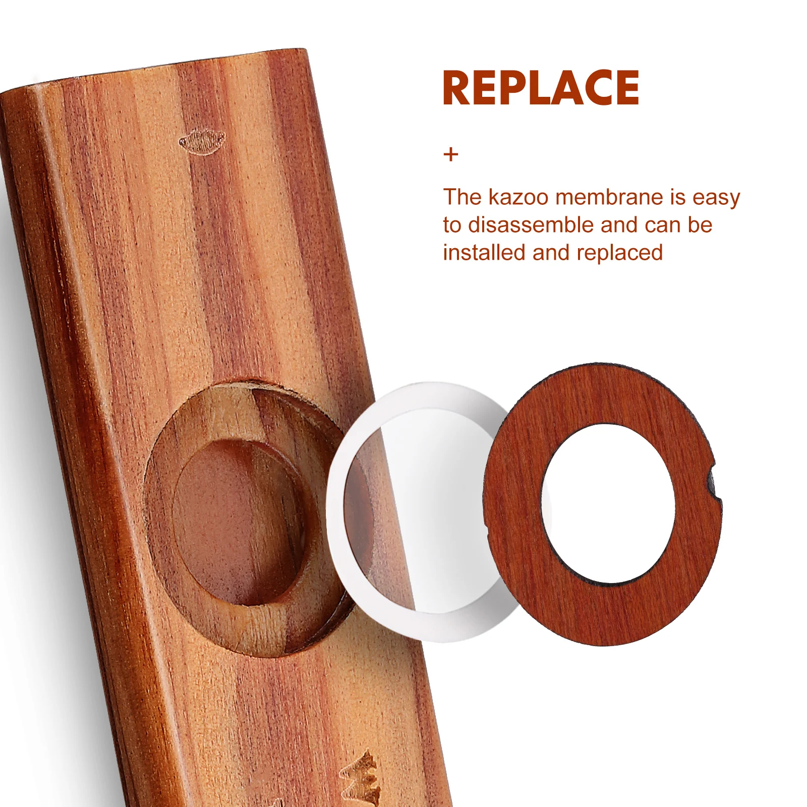 1 Set Wooden Premium Wood Musical Instrument For Kids Adults Guitar Ukulele Partner Portable Kazoo With Spare Membranes Easy To