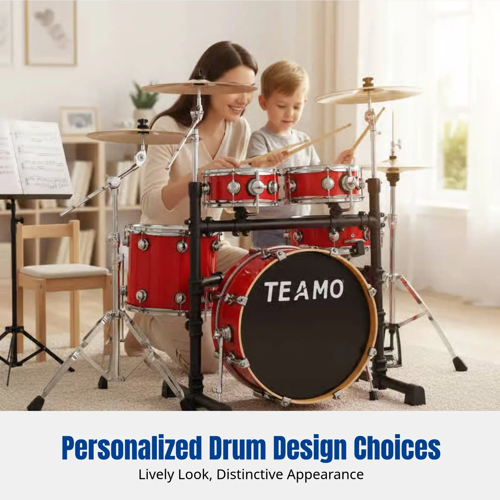 5-Drum 4-Cymbal Portable Jazz Drum Kit, Double-Sided, For Beginners, Adults, Practice, Grading, Quiet Mode, Multi-Color