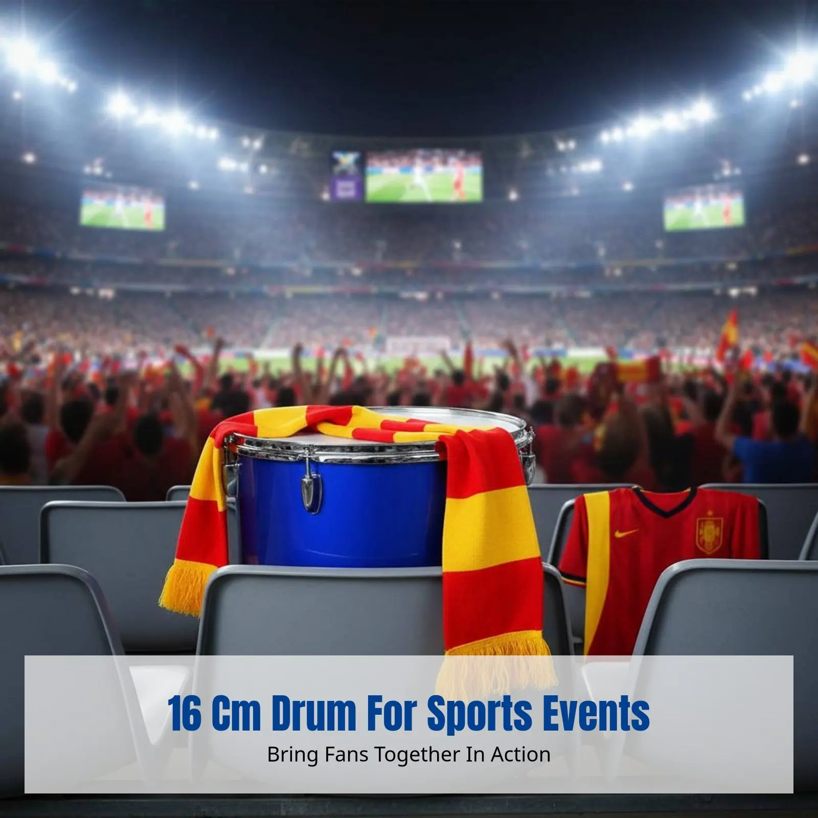 World Championship Cheering Drum, Marching Drum for Sports Events, Fan Support, Multi-Color, Includes Strap & Drumsticks