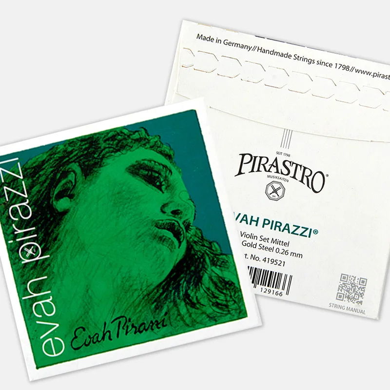 PIRASTRO EVAH PIRAZZI Violin Strings E-gold/E-silver Set 4/4 Size Synthetic Core Aluminum/Silver Winding Medium Tension