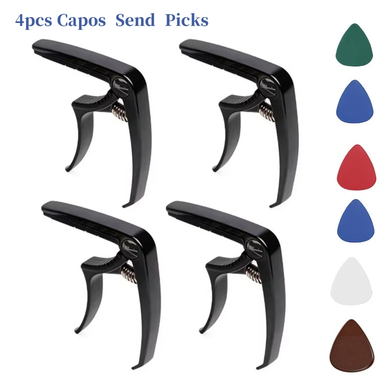 Black Alloy Quick Change Guitar Capo with 6 Picks - Precision Control for Acoustic & Electric Guitars ZSY