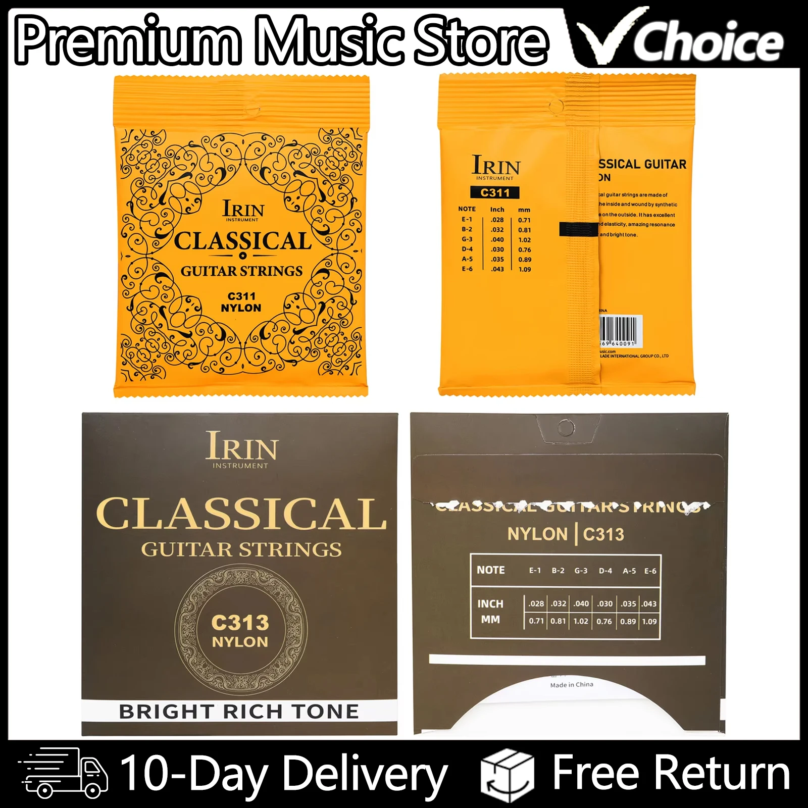 IRIN Classical Guitar Strings Nylon Core Silver Plated Copper PU Coating Classic Guitar Strings Musical Instrument Accessorie