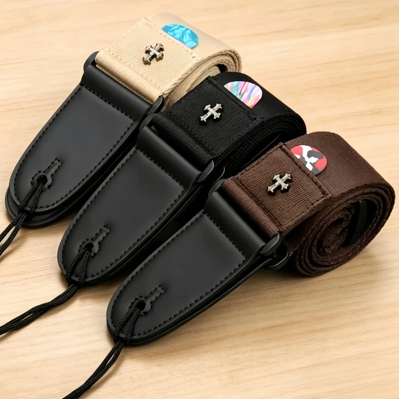 Electric Guitar Strap Acoustic Folk Guitarra Belt Straps Vintage Cross Personality Guitar Straps Pick Pocket Guitar Accessories