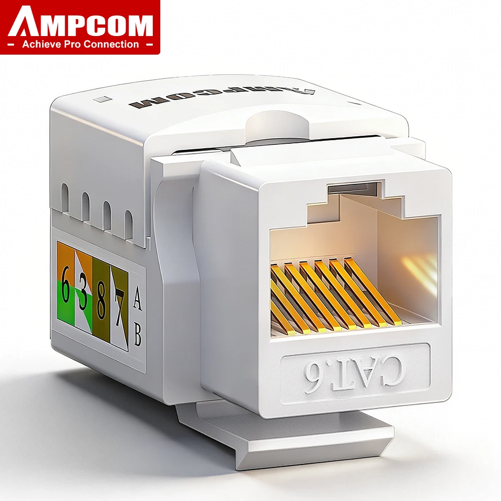 AMPCOM CAT6 RJ45 Keystone Jack UTP 90 Degree 30U/50U Gold Plated UTP Module ABS/LSZH for Standard Patch Panel Wall Plate 1/6 PCS
