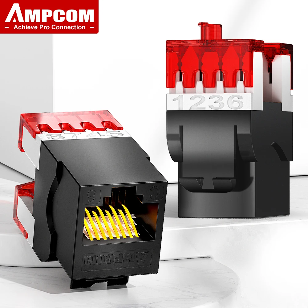 AMPCOM Cat6 RJ45 UTP Keystone Jack 180 Degree Punch Down Type, 50U Gold Plated Network Plug Module Connector for Office, Home