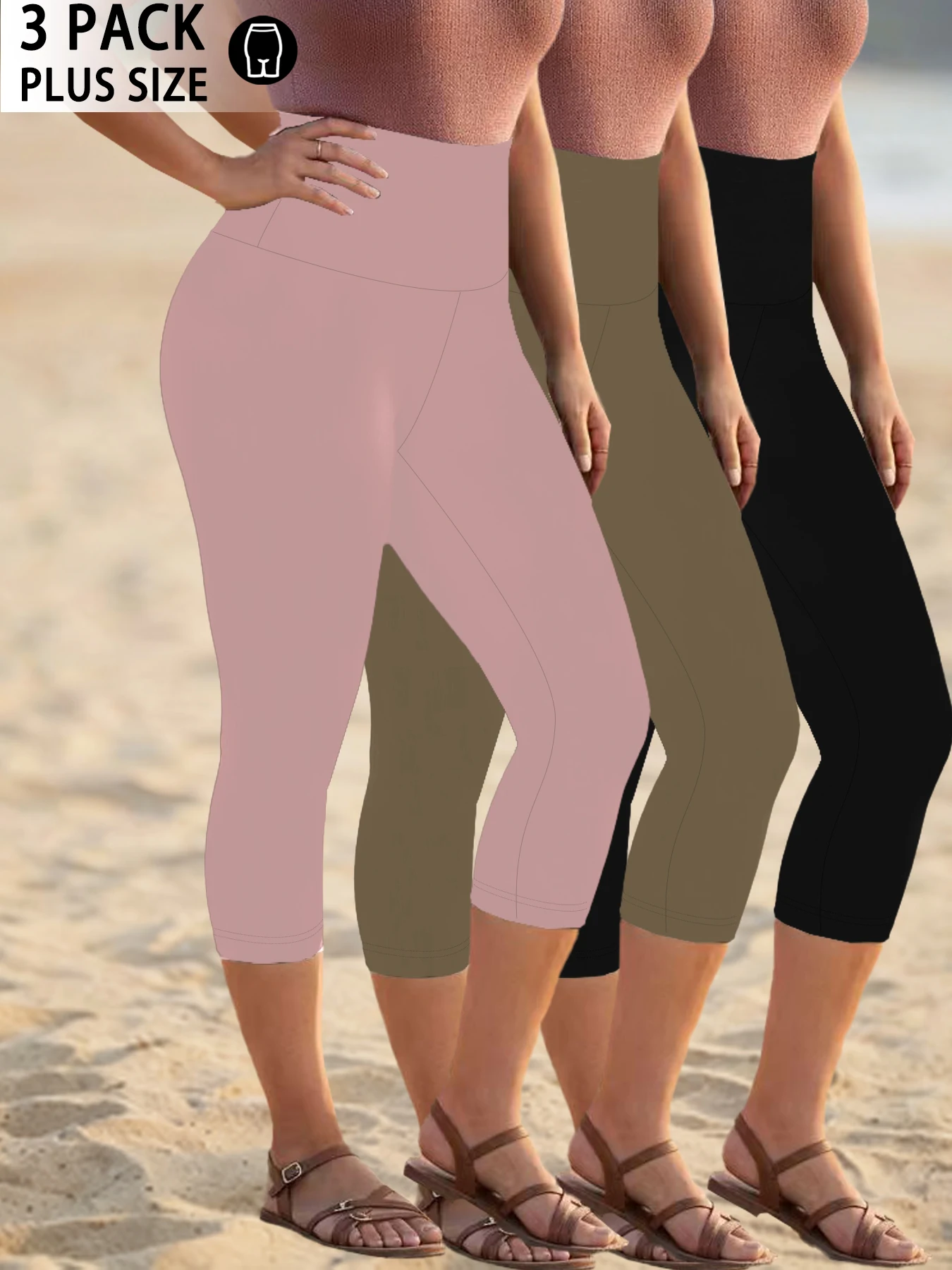 3 Pack Plus Size Women's High Waisted Capri Pants Super Soft Tummy Control No See Through Workout Yoga Running Athletic Leggings