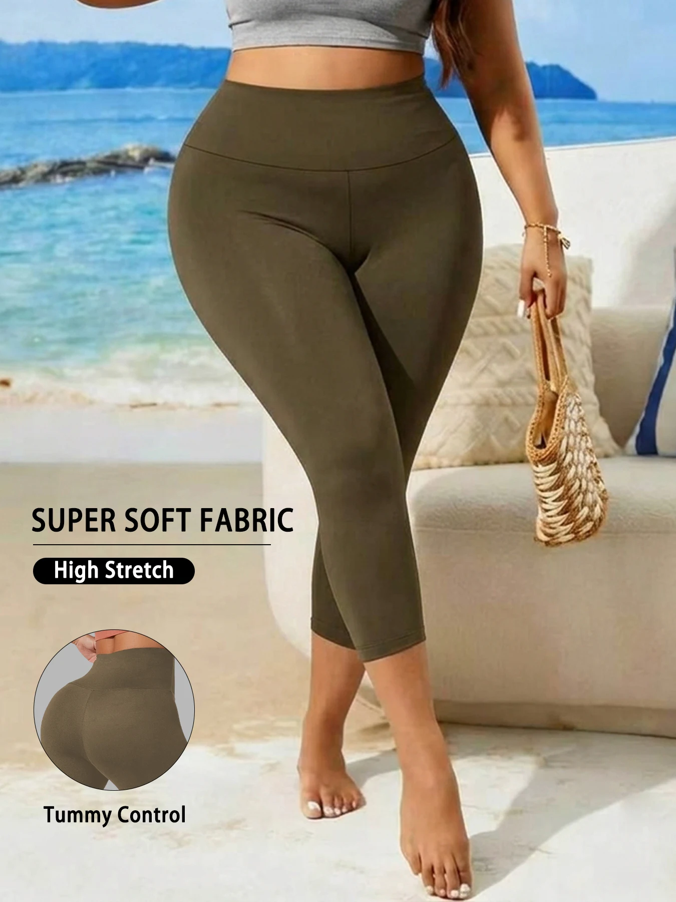 Plus Size Women's High Waisted Capri Pants Super Soft Tummy Control No See Through Workout Yoga Running Athletic Leggings
