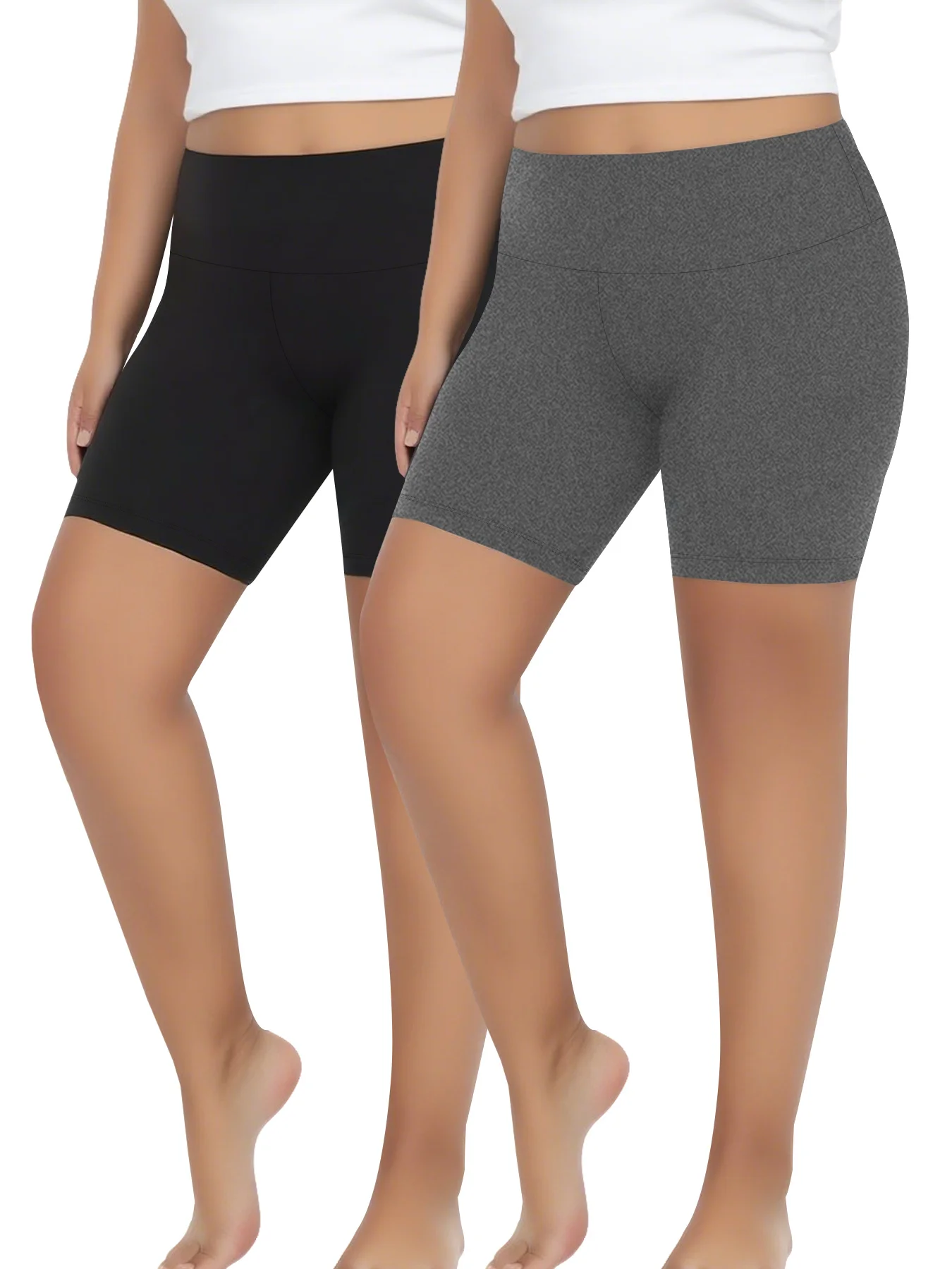 2 pack Plus Size High Waisted Biker Shorts for Women Super Soft Tummy Control Yoga Running Workout Home Lounge Wear