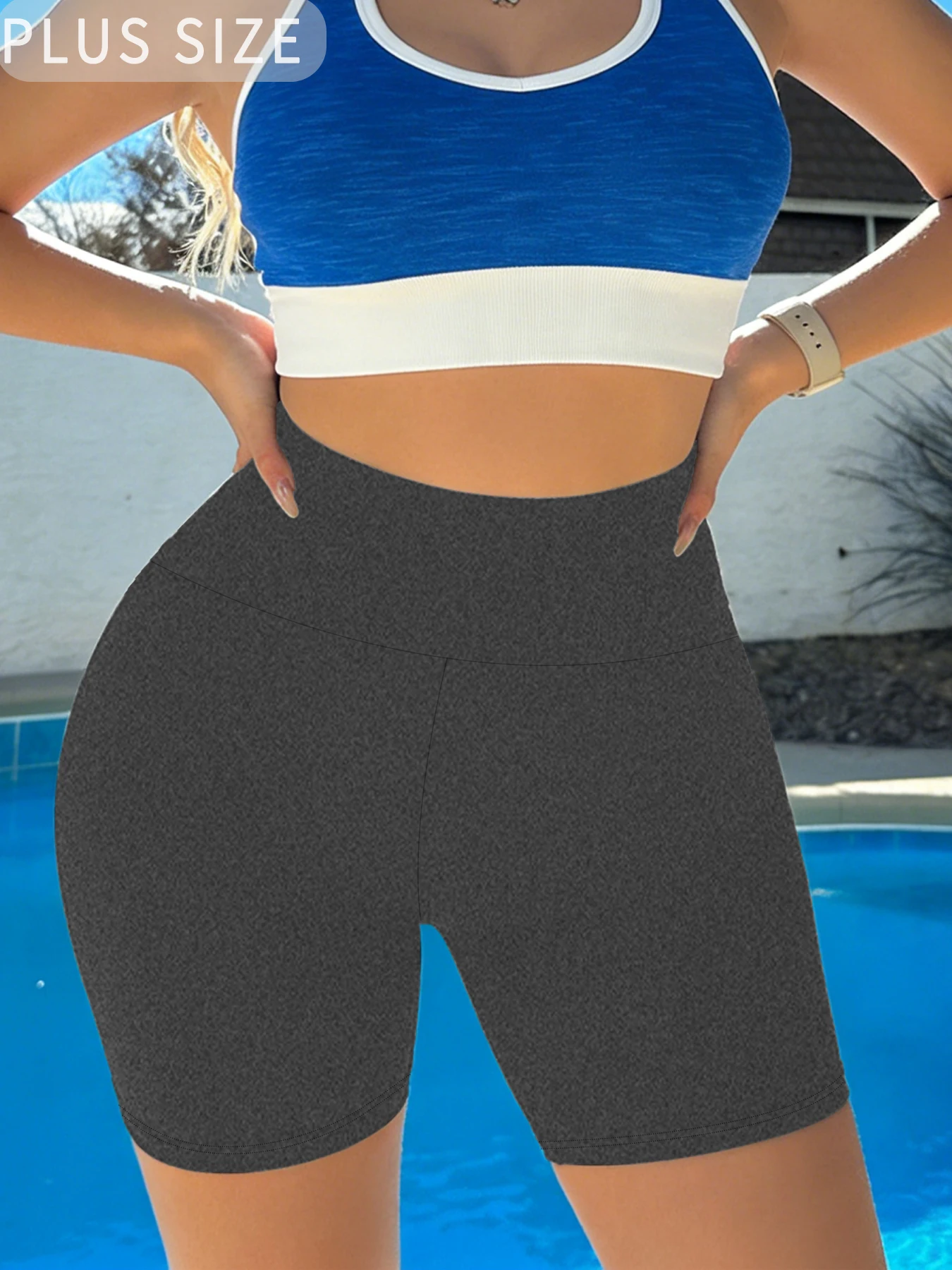 Plus Size Women's Summer Solid Color Sports Shorts Elastic Yoga Pants Sports Shorts High Waisted Tight Pants