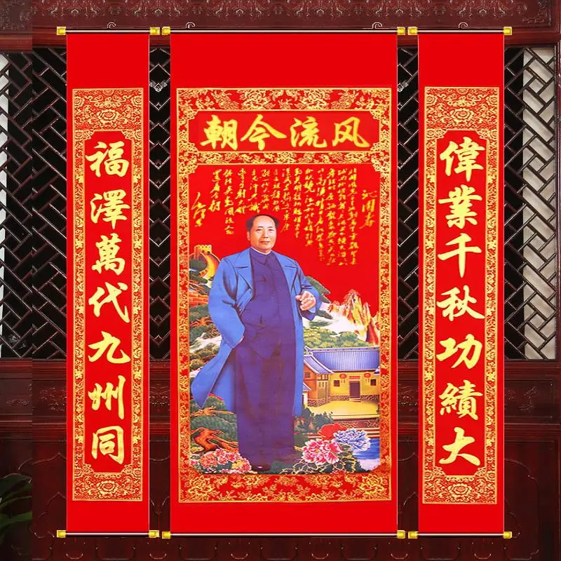 Ele Fabric Chairman Mao Portrait Hanging Painting for Living Room l Traditional Chinese New Year Decorations Couplets