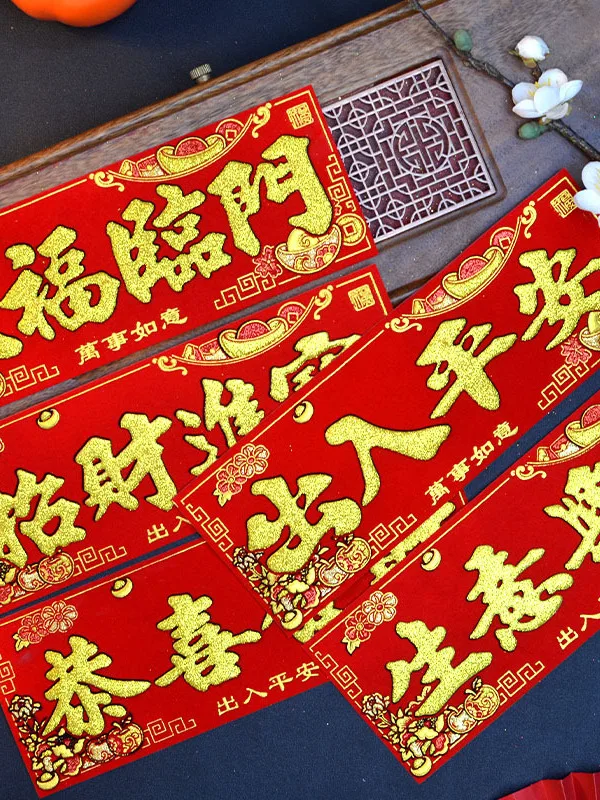 New Year Velvet Self Adhesive Huichun Stiers Year Couplets Small Luy Money Spring Couplets Door Four Words Wave Spr...