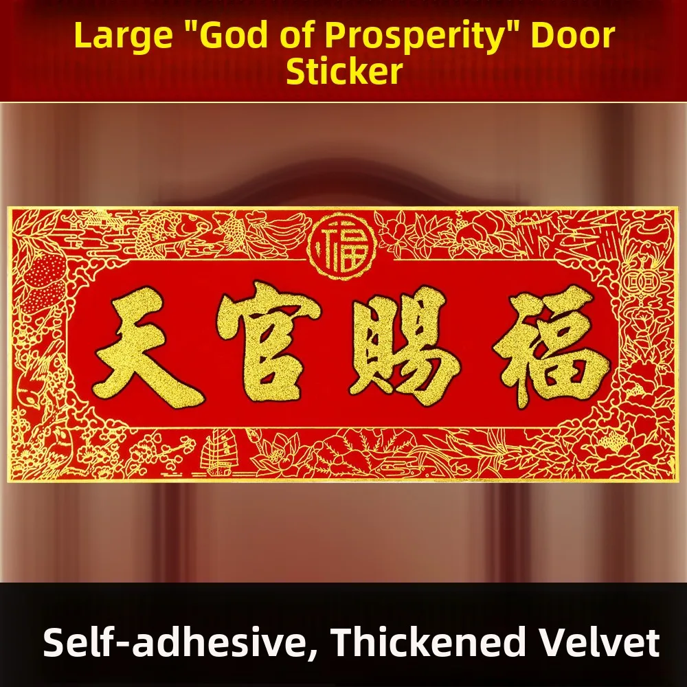 Thi Velvet Door Decals Tian Guan Ci Fu Home Moving Celebration Entrance Bling Couplets Horizontal Banner Home Decor