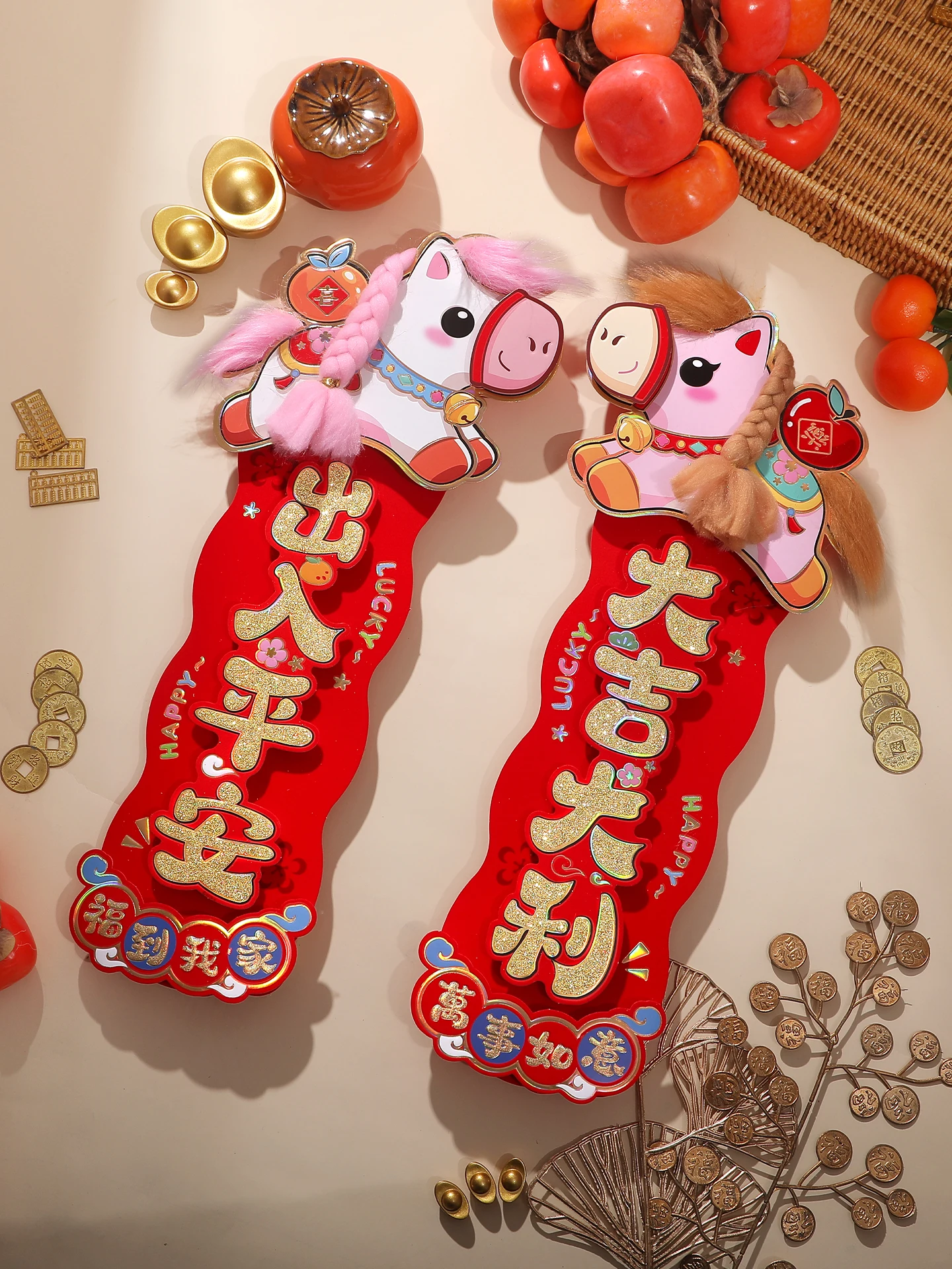 Creative 3D Cartoon New Year Couplets Horizontal And Vertical Swings Year Small Couplets 2026 Model Door Decorations