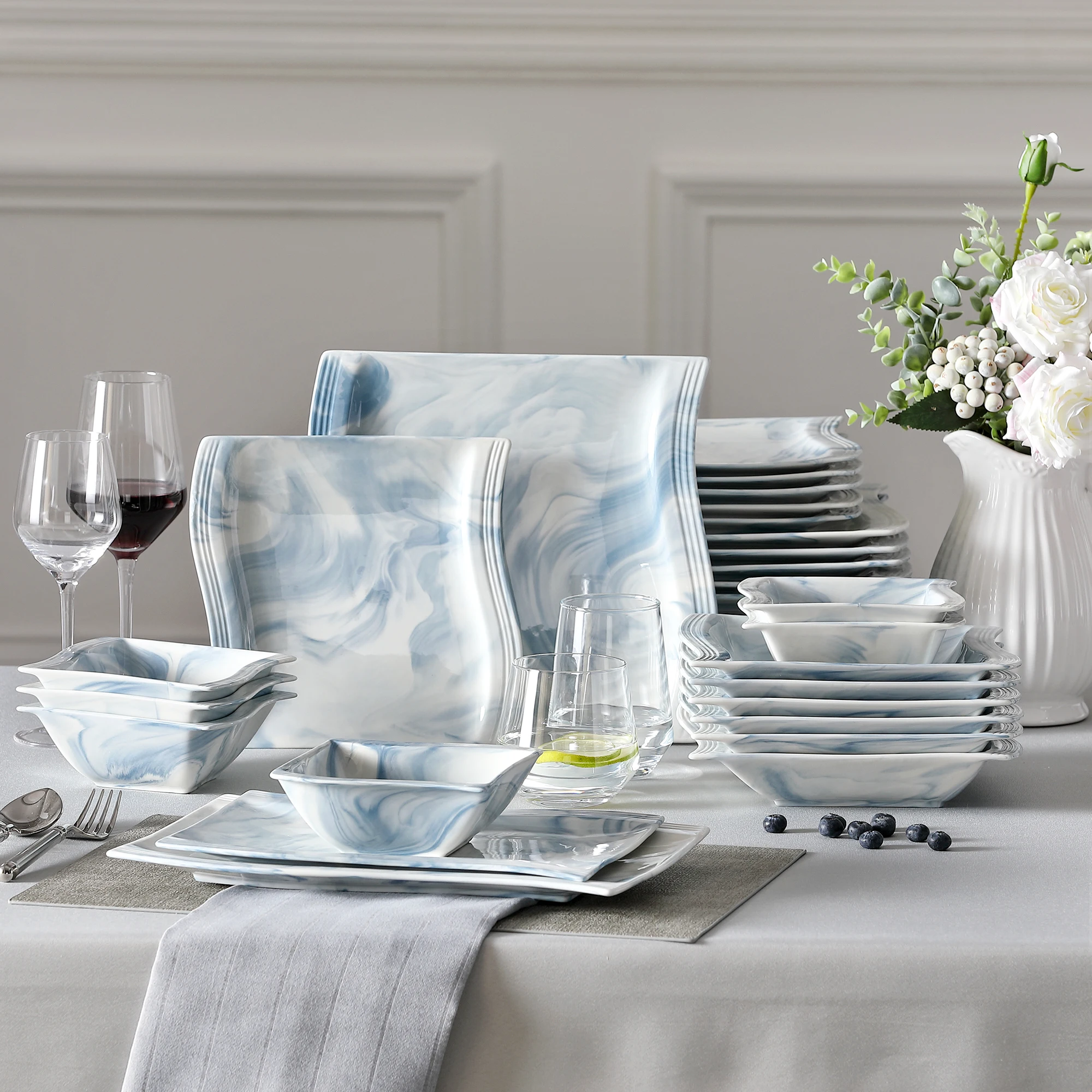 MALACASA 26-PIECE Nordic European Marble Blue Porcelain Tableware Set with Bowl,Dinner Plate,Dessert&Soup Plate Set for 6