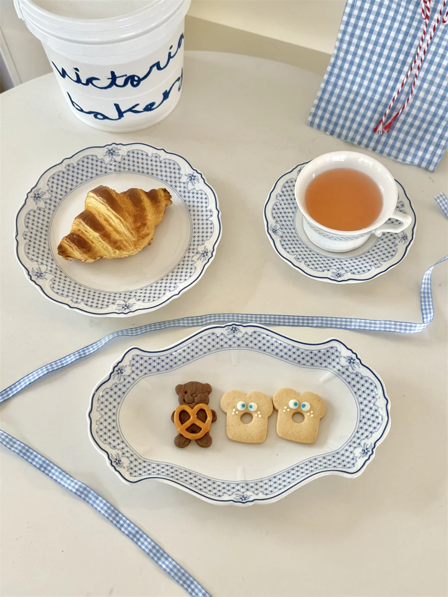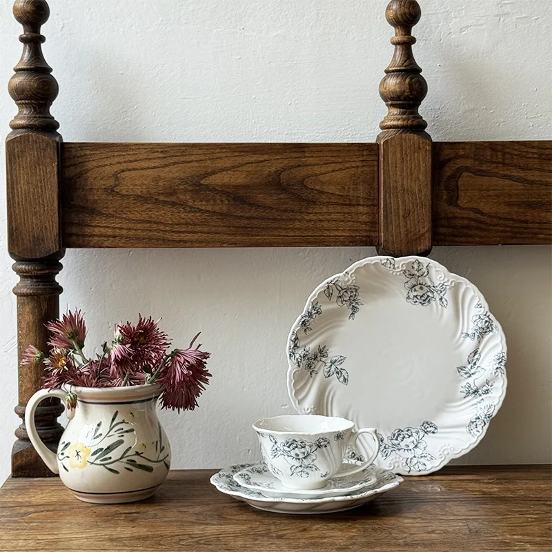 European Style Rose Floral Dessert Plate Ins Ceramic Spaghetti Steak Plate Daily High Quality Afternoon Set Tea Saucer