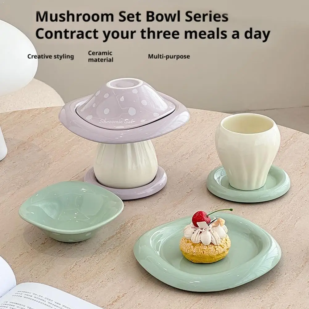 Mushroom Set Bowls and Plates for Home Kitchen Large Capacity Ceramic Bowl Western Plate Tea Desserts Tray Mushroom Tableware