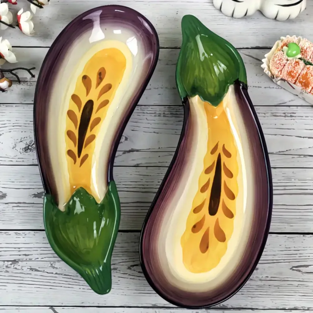 Chip And Dip Serving Platter Purple Eggplant Shaped Tray for Dips Crackers Chips Snacks Party Dish Appetizers Salads Sushi