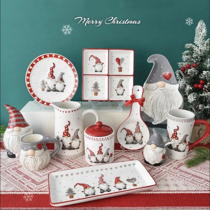 Nordic Santa Claus Dish Embossed Rice Salad Bowl Ceramic Flat Plate Cup Teapot Christmas Tableware Gift