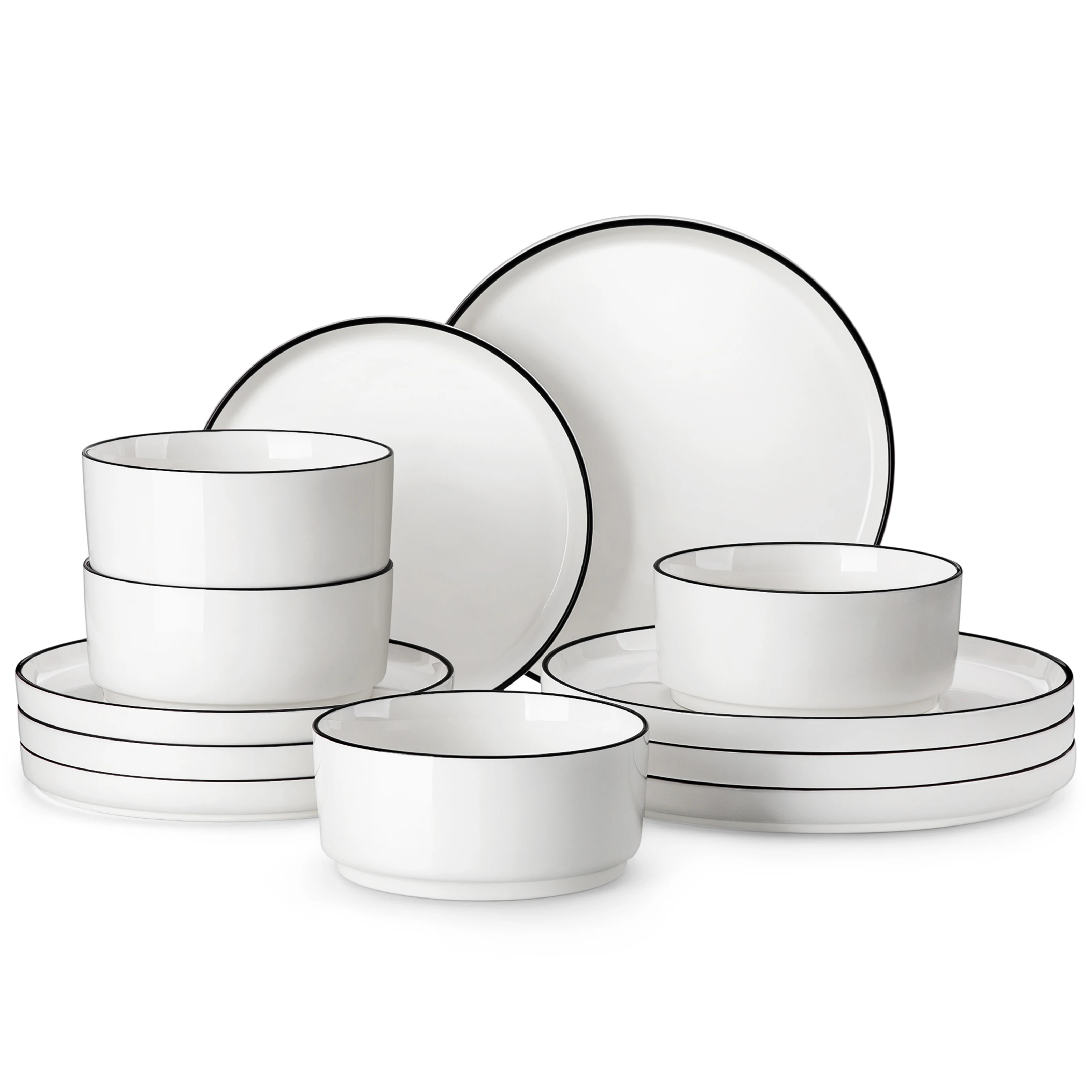 MALACASA Plates and Bowls Sets, 12 Pieces Modern Porcelain Dinnerware Set for 4 Kitchen Dinner Dining Ware Set wtih Black Rim