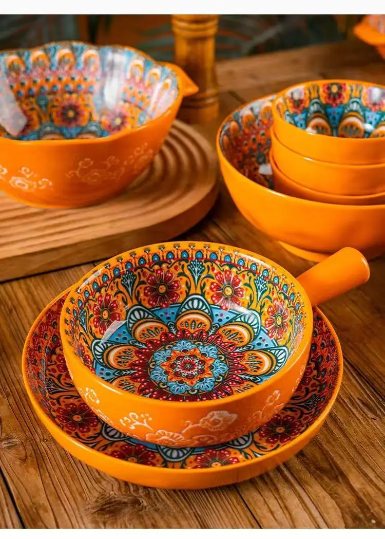 Ceramic Tableware Set Rice Bowl Serving Plate Creative Cutlery Soup Plate Noodle Handle Bowl Sauce Dish Steak Salad Fruit Plate