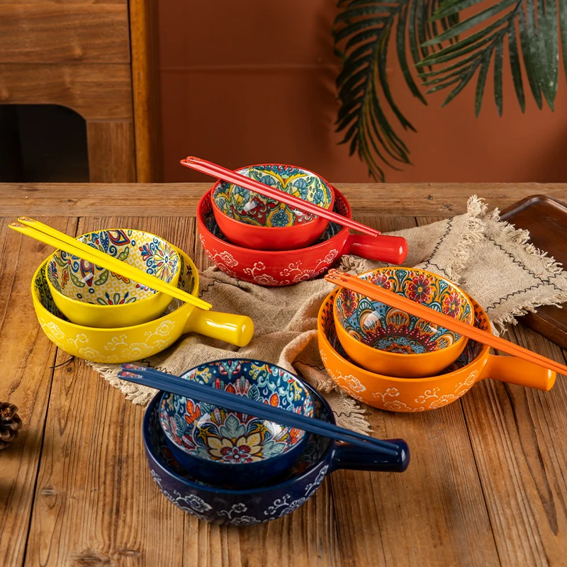 Ceramic Tableware Set Handle Bowl Household Rice With Handle Noodle Breakfast Cup Chopsticks And Spoon Set