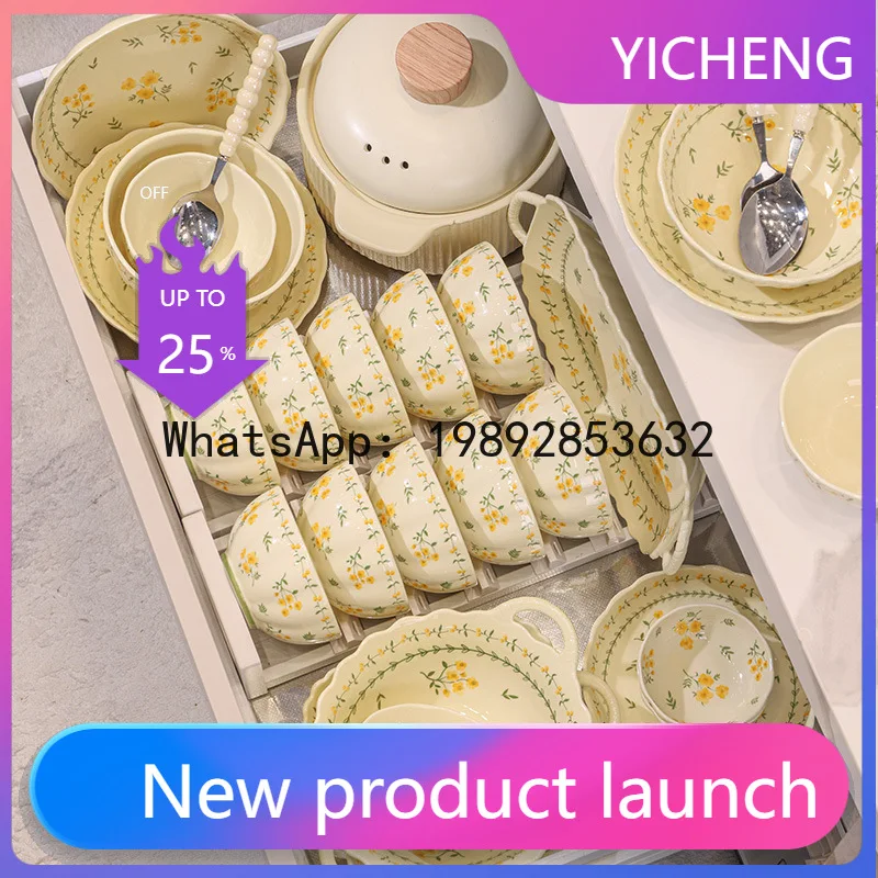 Hys dinnerware set - fresh floral ceramic tableware for home use - high-value rice bowls and plates