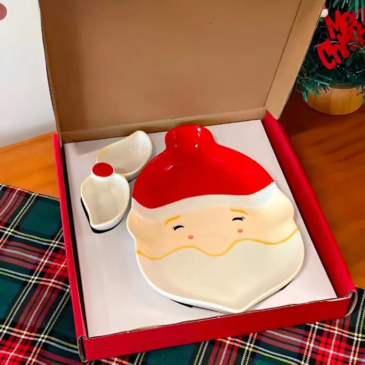 Santa Claus dumpling plate ceramic household with its own dipping dish combination high value Christmas atmosphere tableware