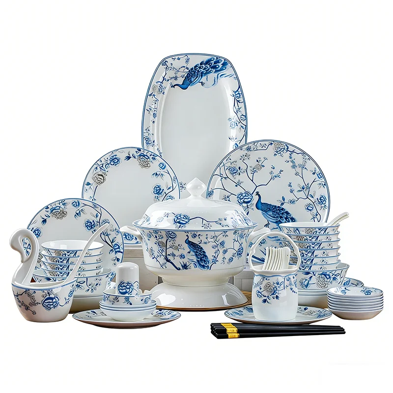 Blue And White Porcelain Tableware Set 18/28/56/30pcs Ceramics Dish Sets Full Set Luxury China Dinnerware Set For 4/6/10 Persons