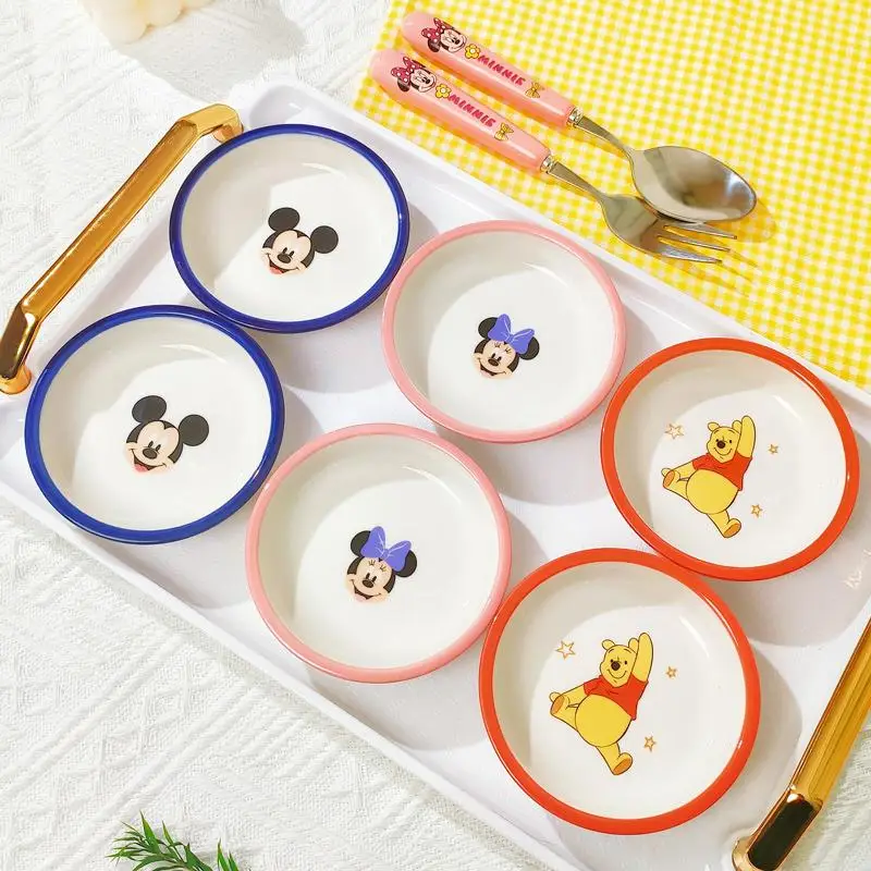 Disney Mickey Minnie Mouse 4pcs/set flavor plate condiment dish ceramic household cute Pooh Bear dish soy sauce condiment dish