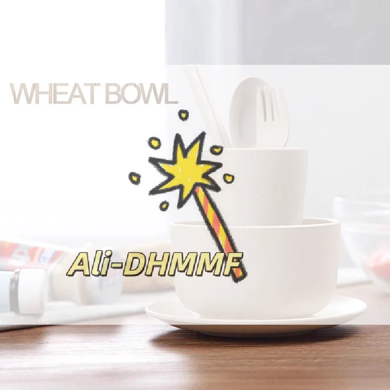Eco Baby Feeding Set - 6-Piece Wheat Straw Tableware with Bowl, Spoon, Fork, Cup for Infant & Toddler Meals