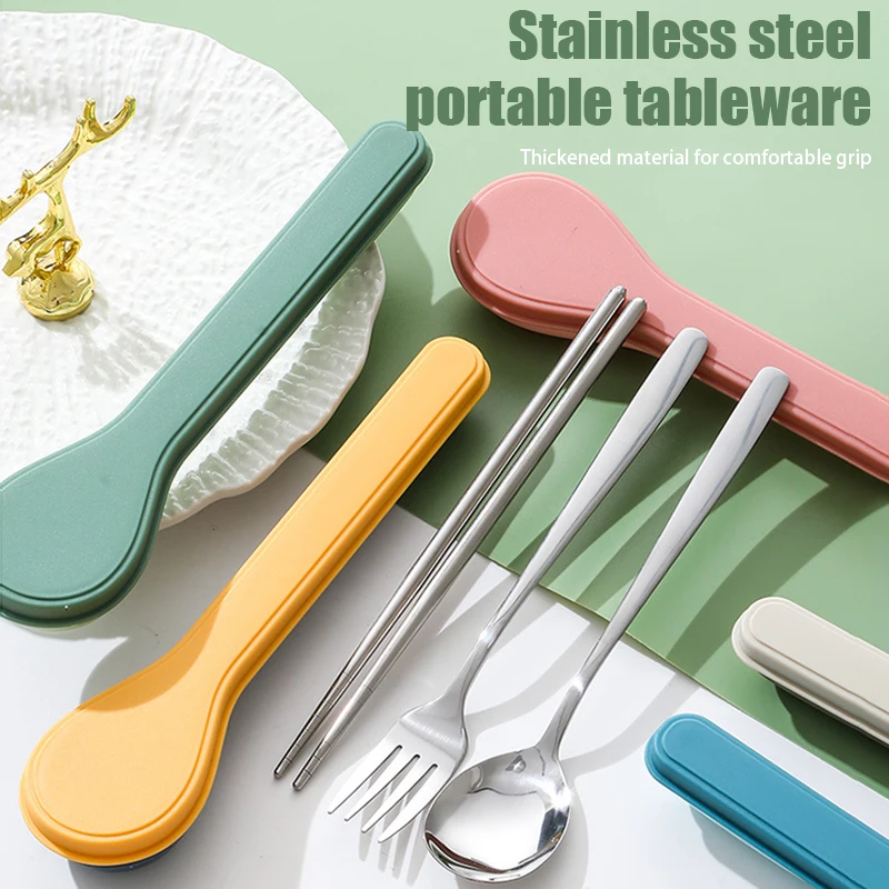 Stainless Steel Korean Style Four Piece Cutlery Set With Box Cutlery Spoon Fork Chopsticks Spoon Shape Box Cutlery Travelling
