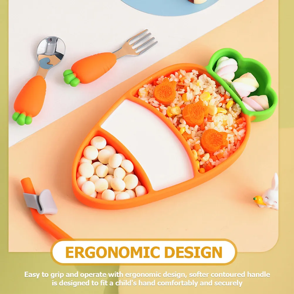 1Set Carrot Tableware Set Cute Cartoon Design Ergonomic Handles Dishwasher Safe Utensils for Feeding