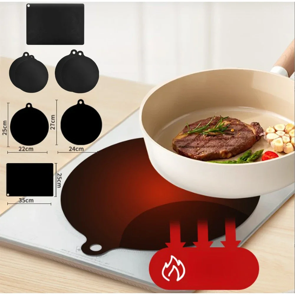 5pcs Induction Cooktop Protector Set Heat Resistant Electromagnetic Stove Protection Rectangular Round Mat For Kitchen Pot