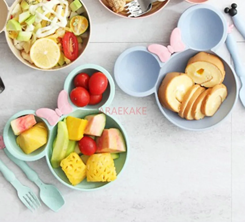 Wheat straw cutlery cute cartoon baby bowl baby bowl household plastic children's eating bowl anti drop bowl set