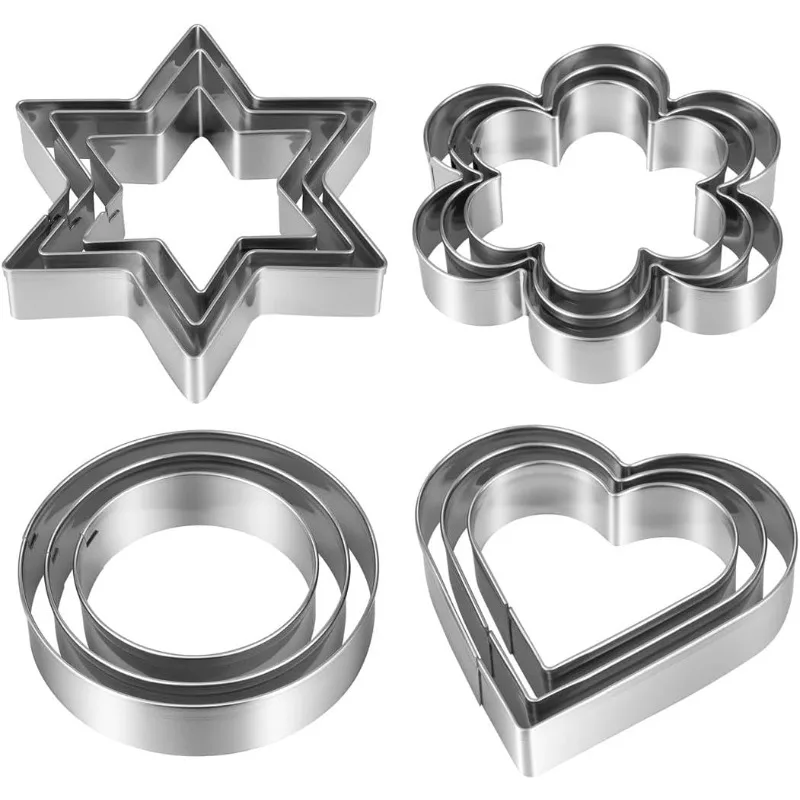 Metal Cookie Cutters Set 12 Pieces, Stainless Steel 3 Heart Cookie Cutters,Cookie Cutters for Valentine's Day Christmas Holiday